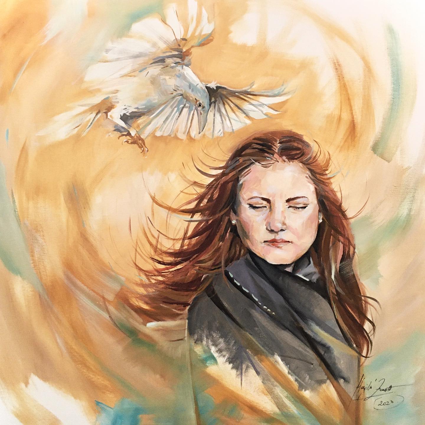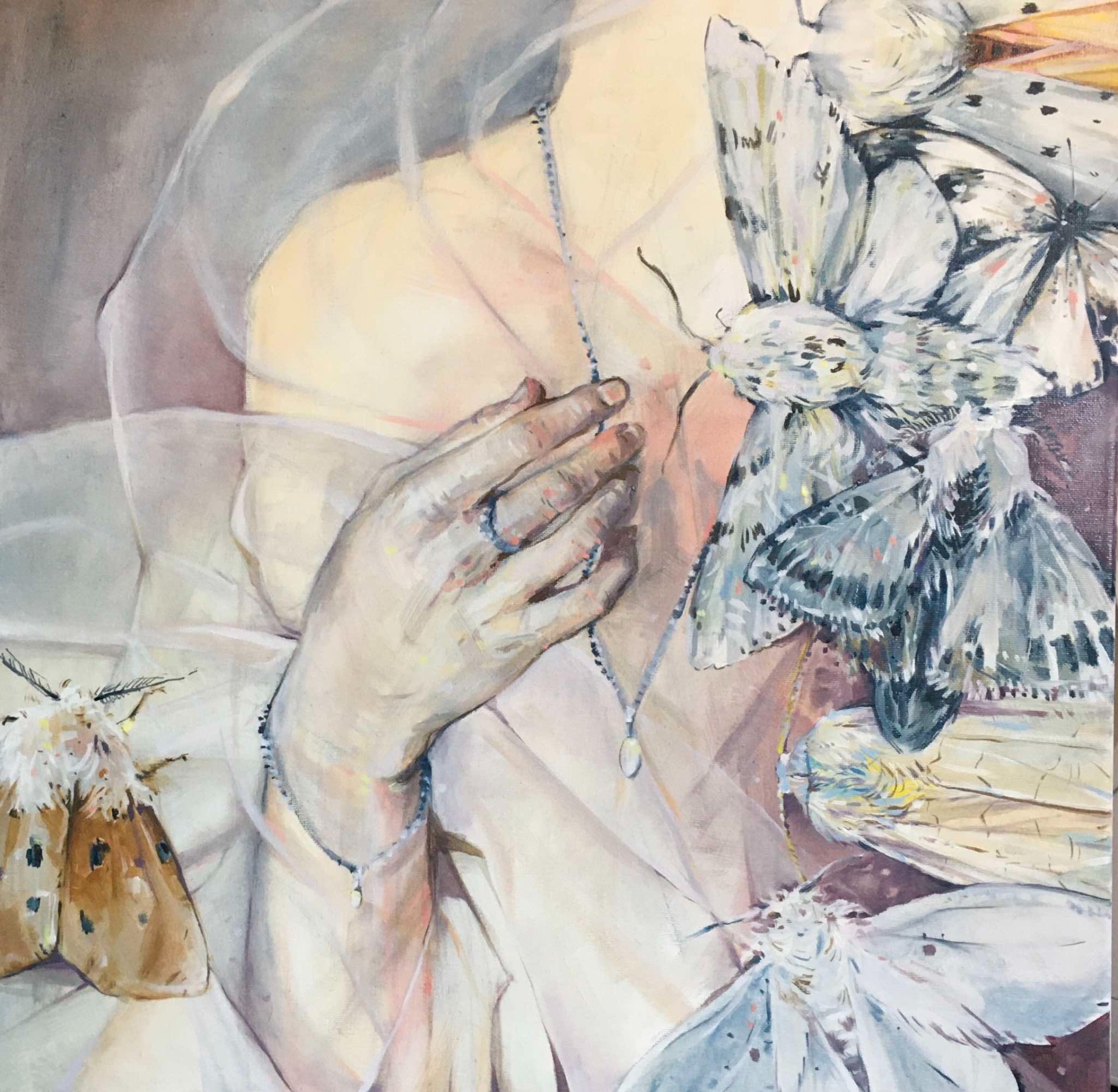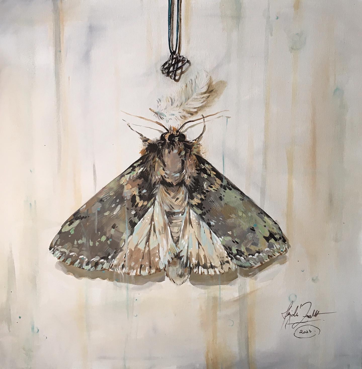Néha észrevétlenül találnak meg szimbólumok, néha pedig a kezembe hullanak. Egy nap egy hatalmas éjjeli lepke pihent a bejárati ajtómon, ahogy kiléptem a küszöbön. A kezembe esett, majd elpusztult. Az utcára kilépve egy gyűrűbe botlottam, majd egy fehér tollpihe hullott a kezembe. Az üzenetet vászonra festettem, és hagytam, hadd találjon meg a jelentése.