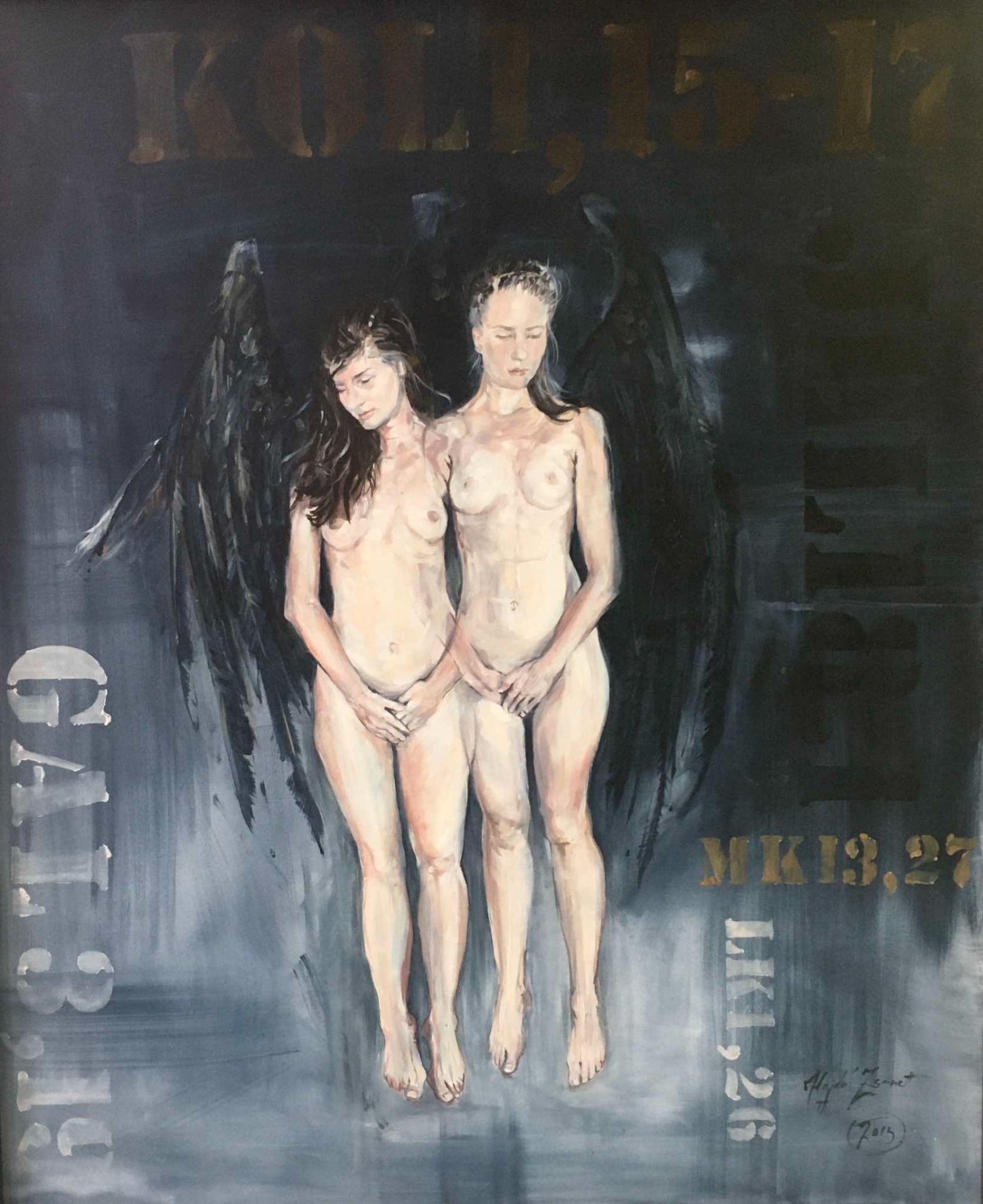 A festmény a Kortárs Keresztény Ikonográfiai Biennále kiállítására készült Kecskemétre. Az angyalok körül látható feliratok az angyalok megjelenéseit és leírásait mutatják a Bibliában.